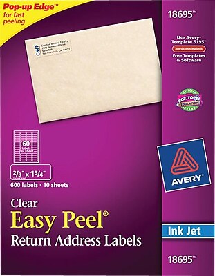 Avery® 18695 Clear Inkjet Return Address Labels with Easy Peel®, 2/3" X 1-3/4", 600/Box | Staples®
